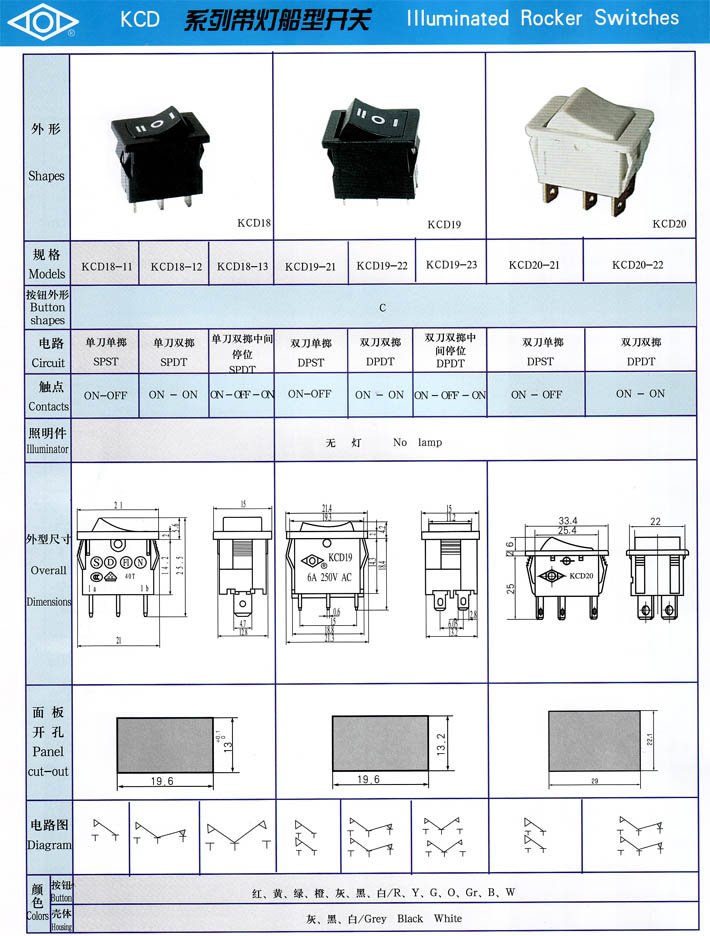 KCD18/19/20系列帶燈船型開關(guān)